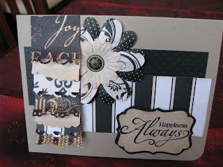 Most of this card was made using scraps I had leftover from the scrapbook page I created using the first sketch. (Sorry I can't show the sketch, you'll have to join the class to see it) One tip I got years ago was to take your scraps and make a card after each scrapbook page you make. This way you have less to clean up and put away. ;) Actually, I think the point was that you would build your card stash, but either way it works for me when I have the time.